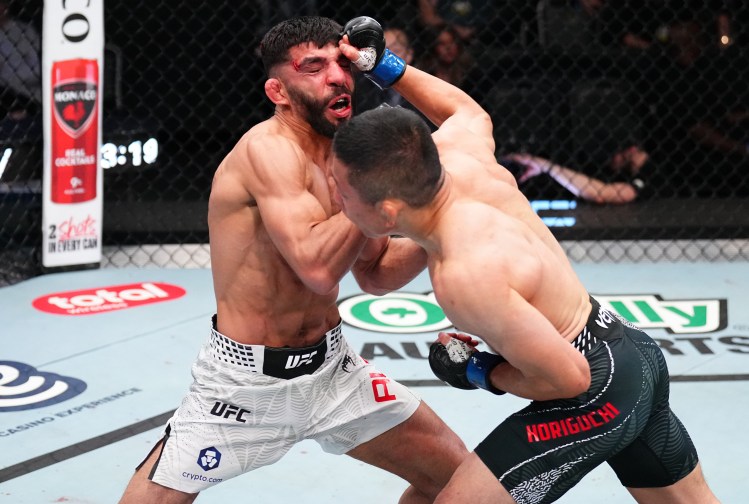 Horiguchi made his way into the octagon first and Albazi followed. The fight opened with both men testing distance, but Horiguchi quickly found his rhythm with sharp jabs and quick strikes. Albazi tried to press forward, but he couldn’t match Horiguchi’s speed and accuracy. Horiguchi scored clean shots throughout the round and even rocked Albazi with a left hand, leaving Albazi visibly hurt at times. Late in the round, Horiguchi landed a sharp left hand that clearly got Albazi’s attention. Round 1 was a strong opening round for Horiguchi.