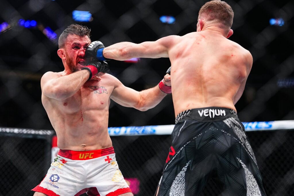 Low kicks from Yan kept pushing Dvalishvili backward. Yan landed a jab and an inside leg kick landed clean from Yan. Dvalishvili was moving nonstop, but not putting much offense behind it. Yan dug a shot to the body. Dvalishvili cracked him with a short elbow, and Yan answered with a right hand. Dvalishvili shot again but Yan stuffed it and landed a sharp counter left. A leg kick hit Dvalishvili, though he didn’t react at all.