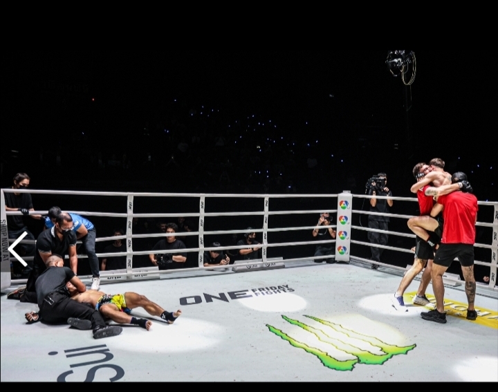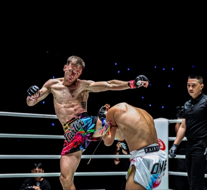 From the opening bell, the fight was fast and explosive. Rambong, forced his way through Irvine’s defense to get close enough to trade punches. Once he got inside, Rambong threw heavy shots, while Irvine stepped back and fired body kicks in return. Rambong didn’t realize those body kicks were part of Irvine’s plan to set up the knockout. Soon after, Irvine threw another kick. Rambong tried to catch and counter it like before, but this time the kick came high, right over his arms. Irvine’s shin landed clean on Rambong’s neck, sending the Thai fighter crashing to the floor.