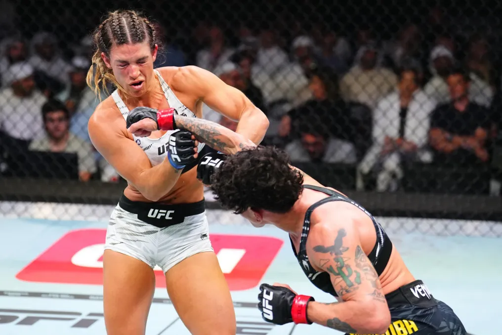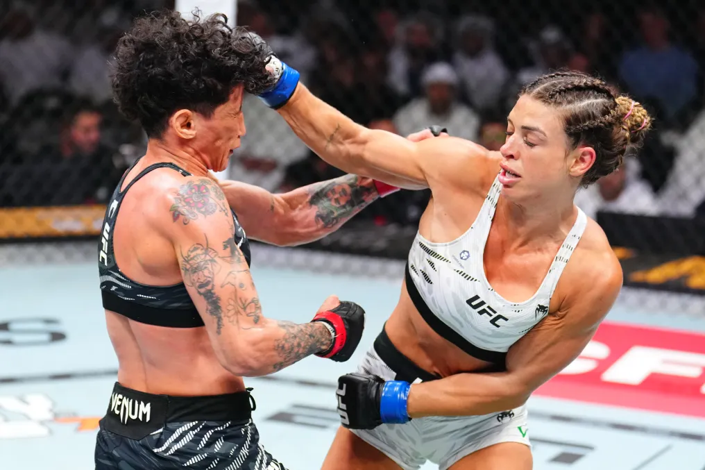 After a hard-fought five rounds, the judges sided with Mackenzie Dern’s forward pressure, striking output, and takedowns, awarding her a unanimous decision victory over Virna Jandiroba with scores of 48-47, 48-47, and 49-46.